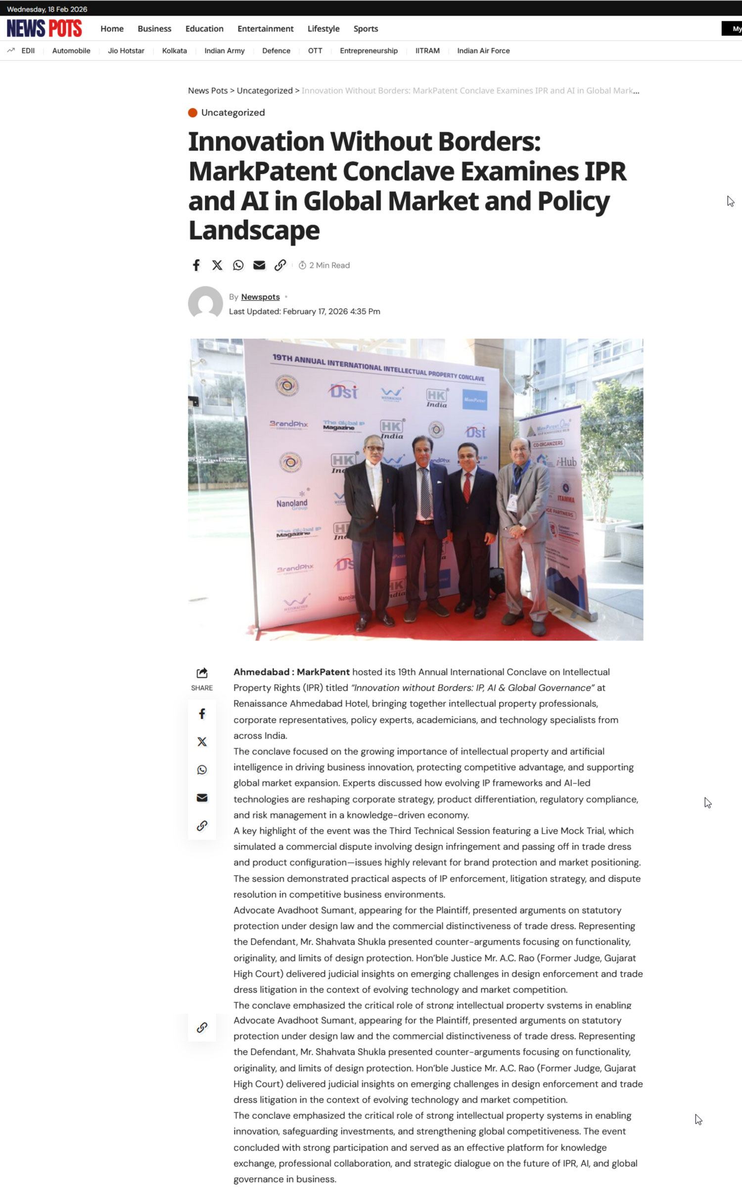 18th Annual Internatiolnal Intellectual Property Conclave "Driving Innovations & Emplowering Growth"